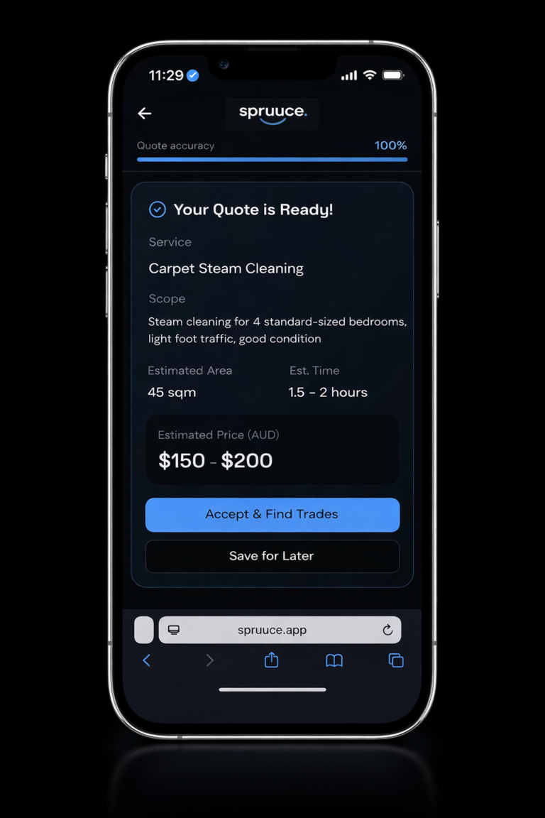 Spruuce Australia makes hiring cleaners and tradespeople simple, fast, and transparent with our price-first AI platform.